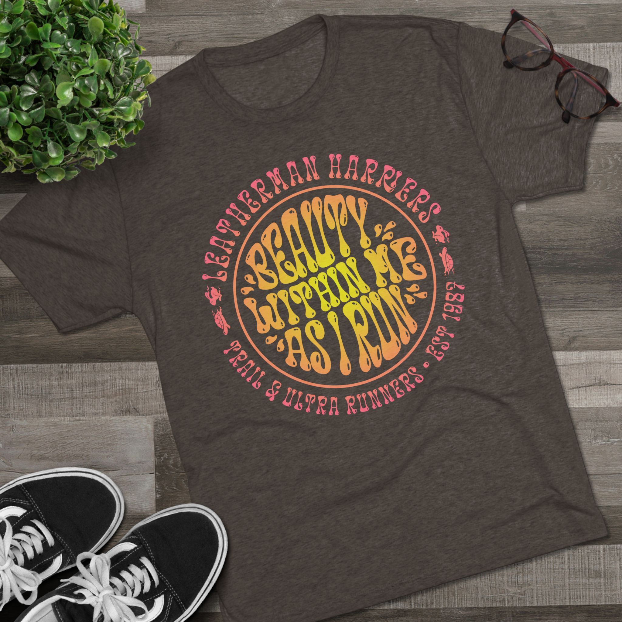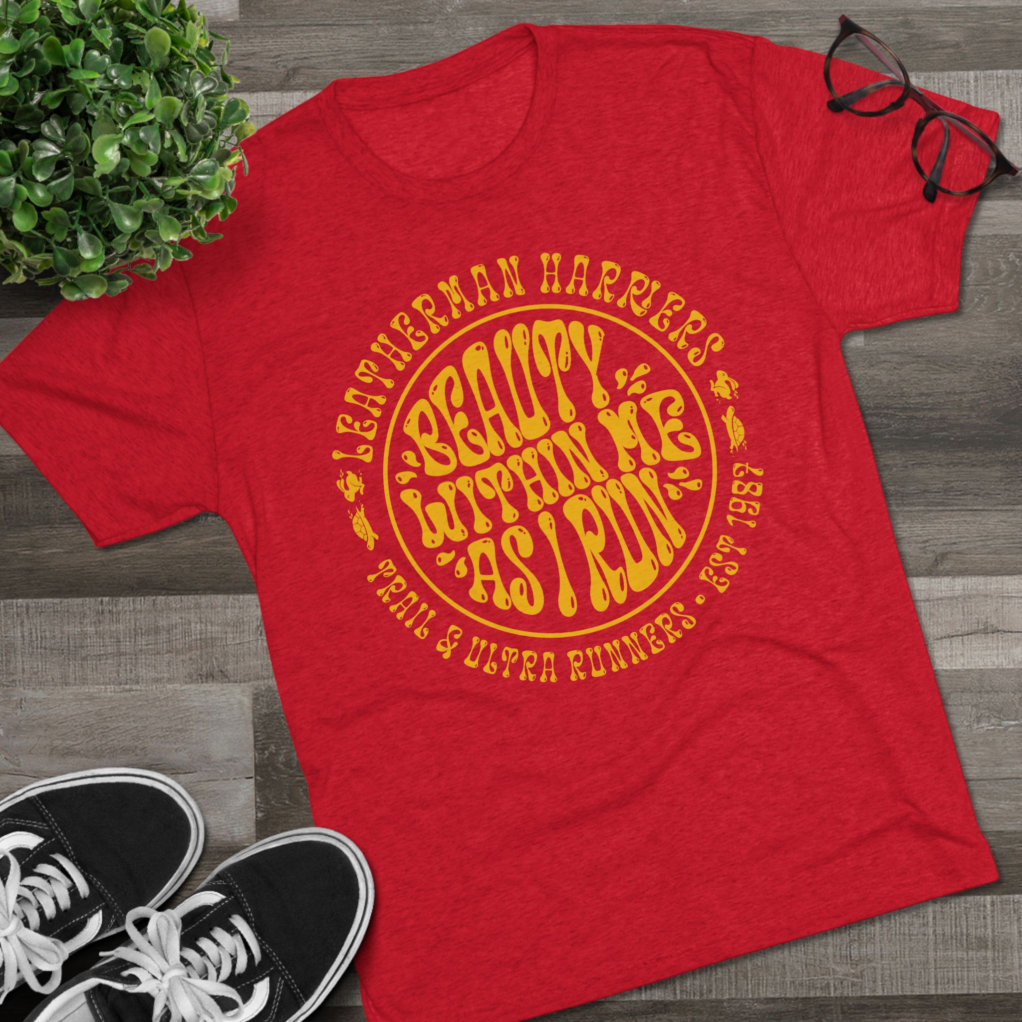 This lightweight crew tee carries a nostalgic, sun-faded vibe — a soft, drapey shirt that reads like a postcard from lazy summer days. The round, hand-lettered design taken from the Leatherman’s Loop invocation feels like a sing-song mantra wrapped in waves of grass, on a clear morning, as the sun rises. It sits comfortably on the body without clinging, letting the vintage-inspired art do the talking while you move through markets, meetups, or quiet coffee breaks. Wear it when you want your outfit to feel casual, thoughtful, and a little whimsical — an effortless layer that blends comfort with personality.
