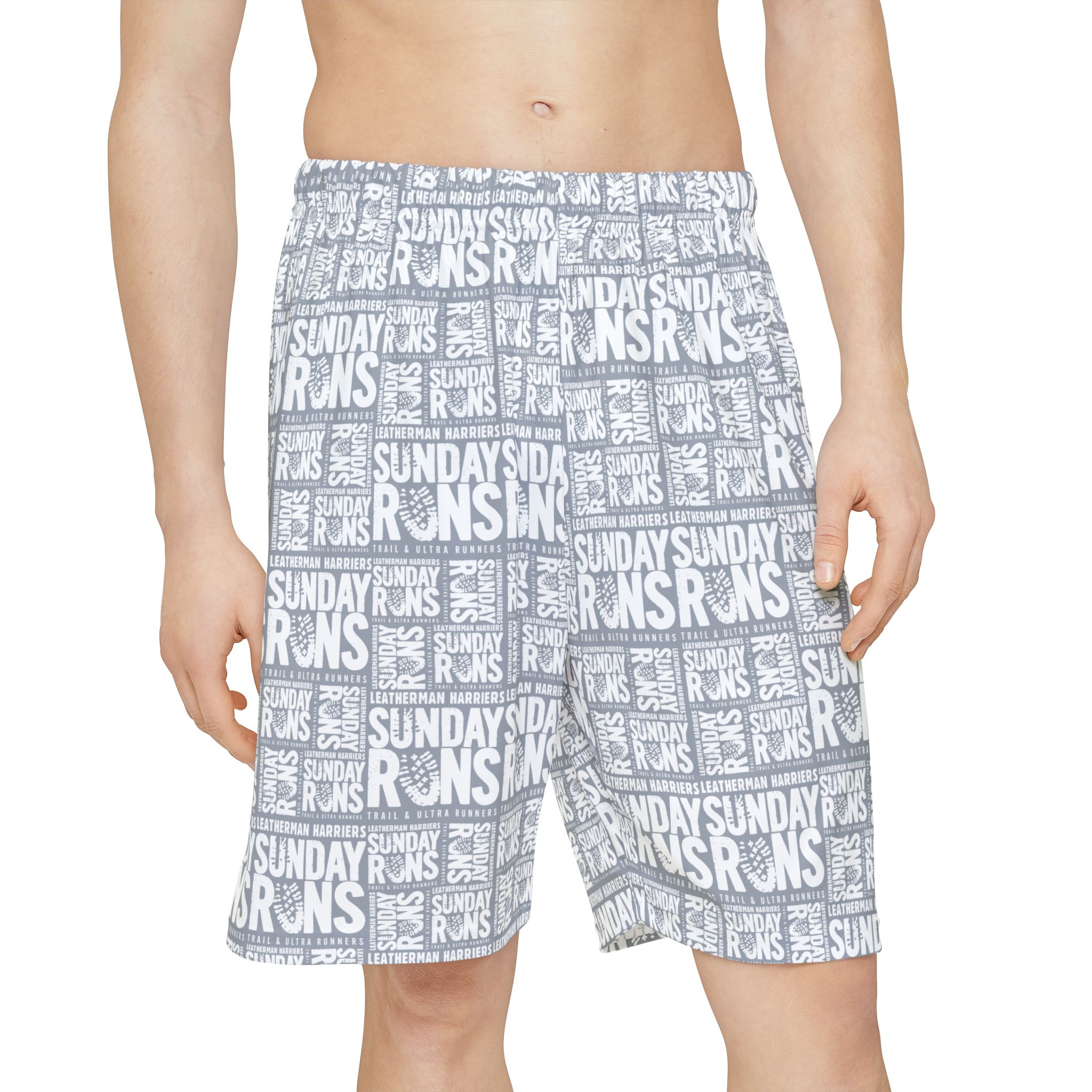 Lightweight, breathable sports shorts printed all-over with a bold repeating “SUNDAY RUNS” motif. These shorts feel like movement: the quick-dry polyester keeps you comfortable mile after mile, while the elastic waistband and drawstring let you dial in a relaxed, secure fit. The graphic repeats in a grid for an urban-runner, street-style look that reads equally at the track, on a recovery walk, or lounging after a morning run. No pockets keep the silhouette clean and unobstructed. Assembled in the USA from globally sourced parts with crisp, vibrant printing that holds up to frequent wear and washes.
