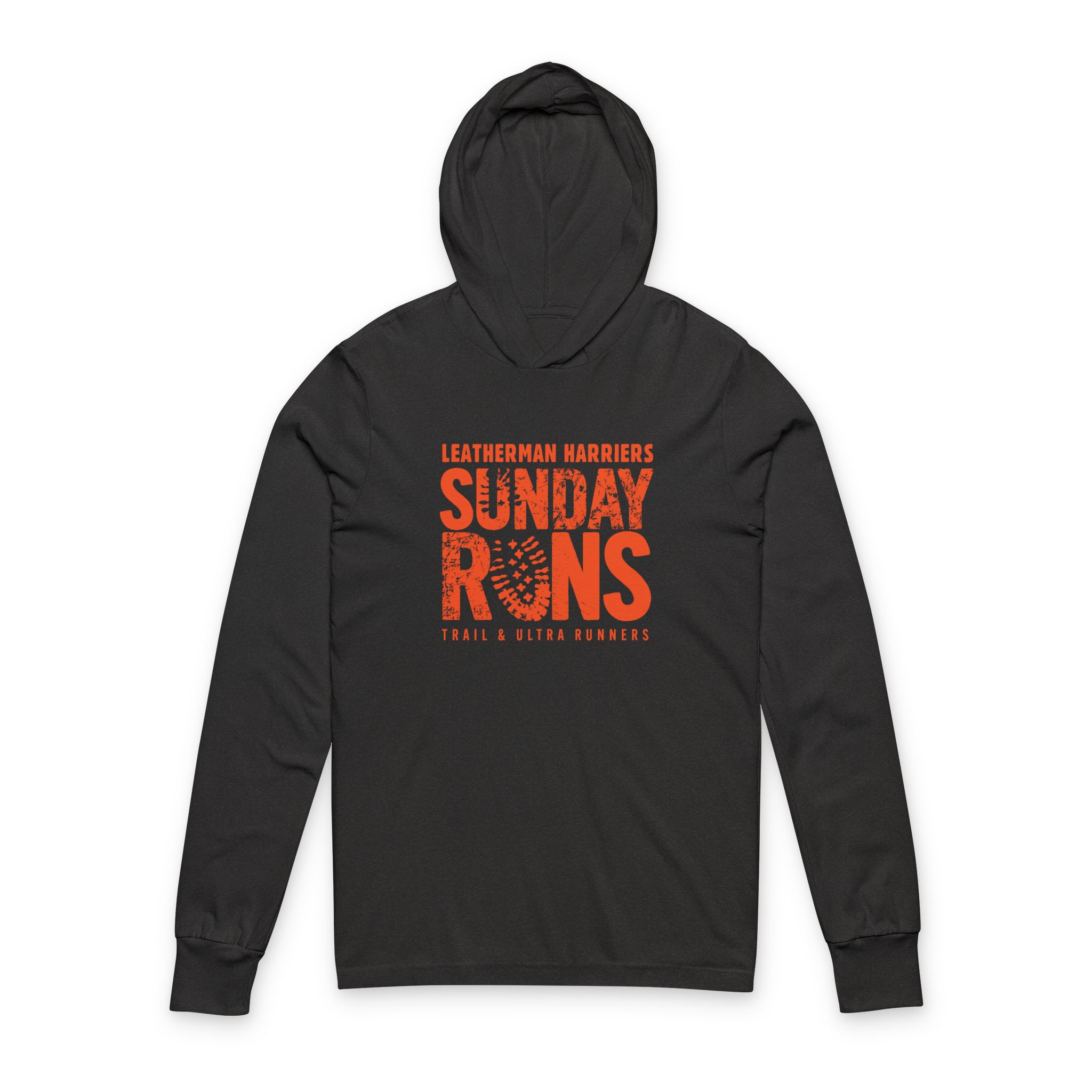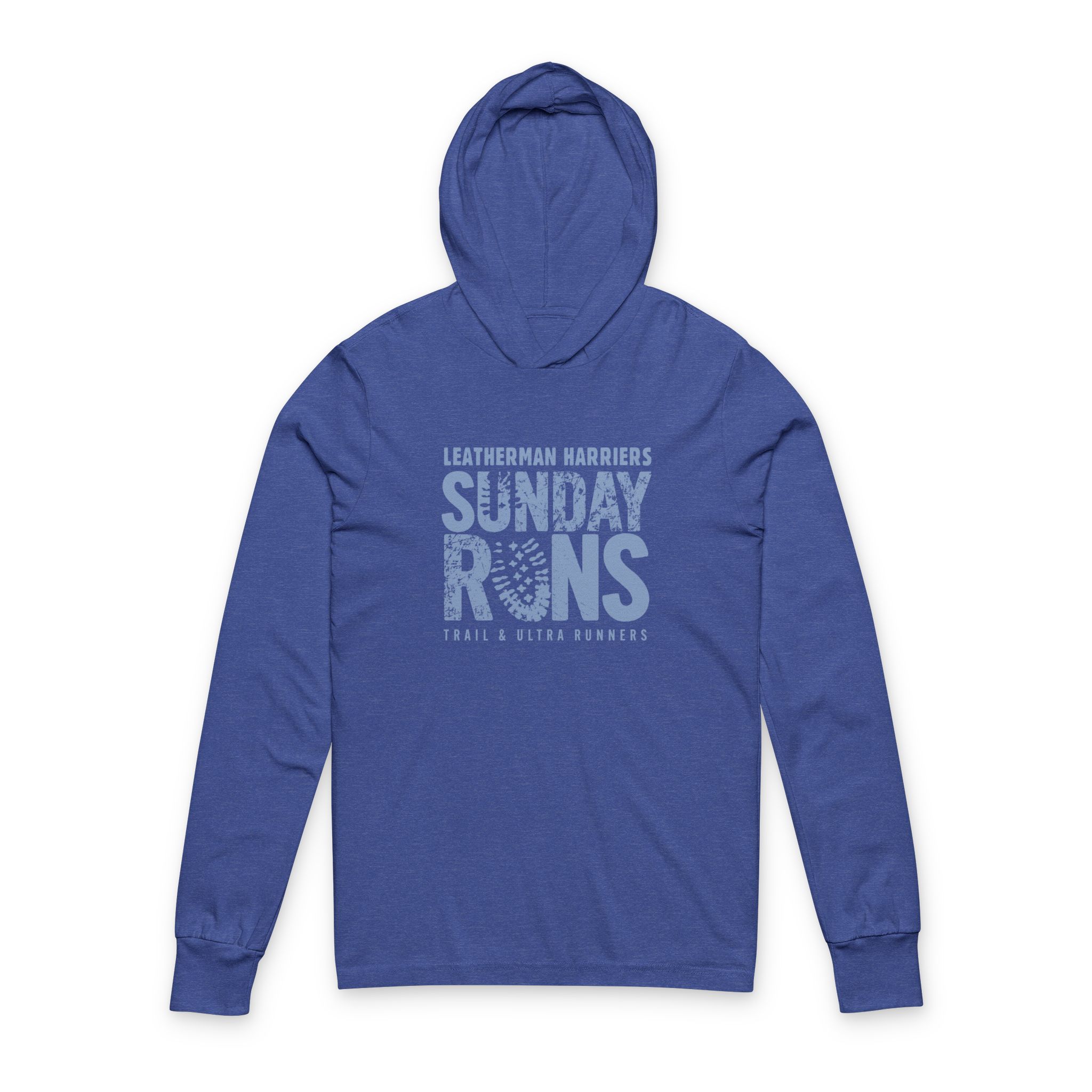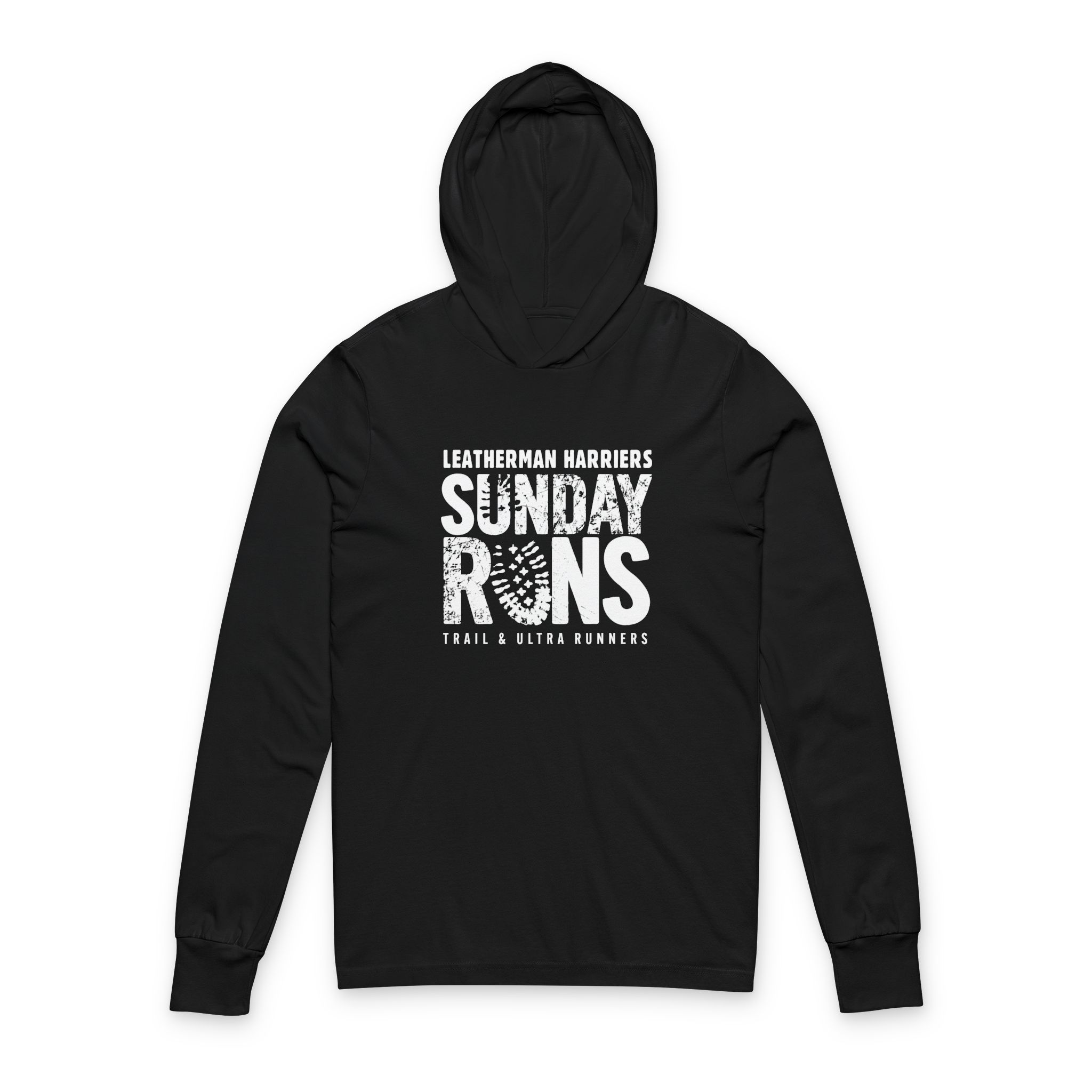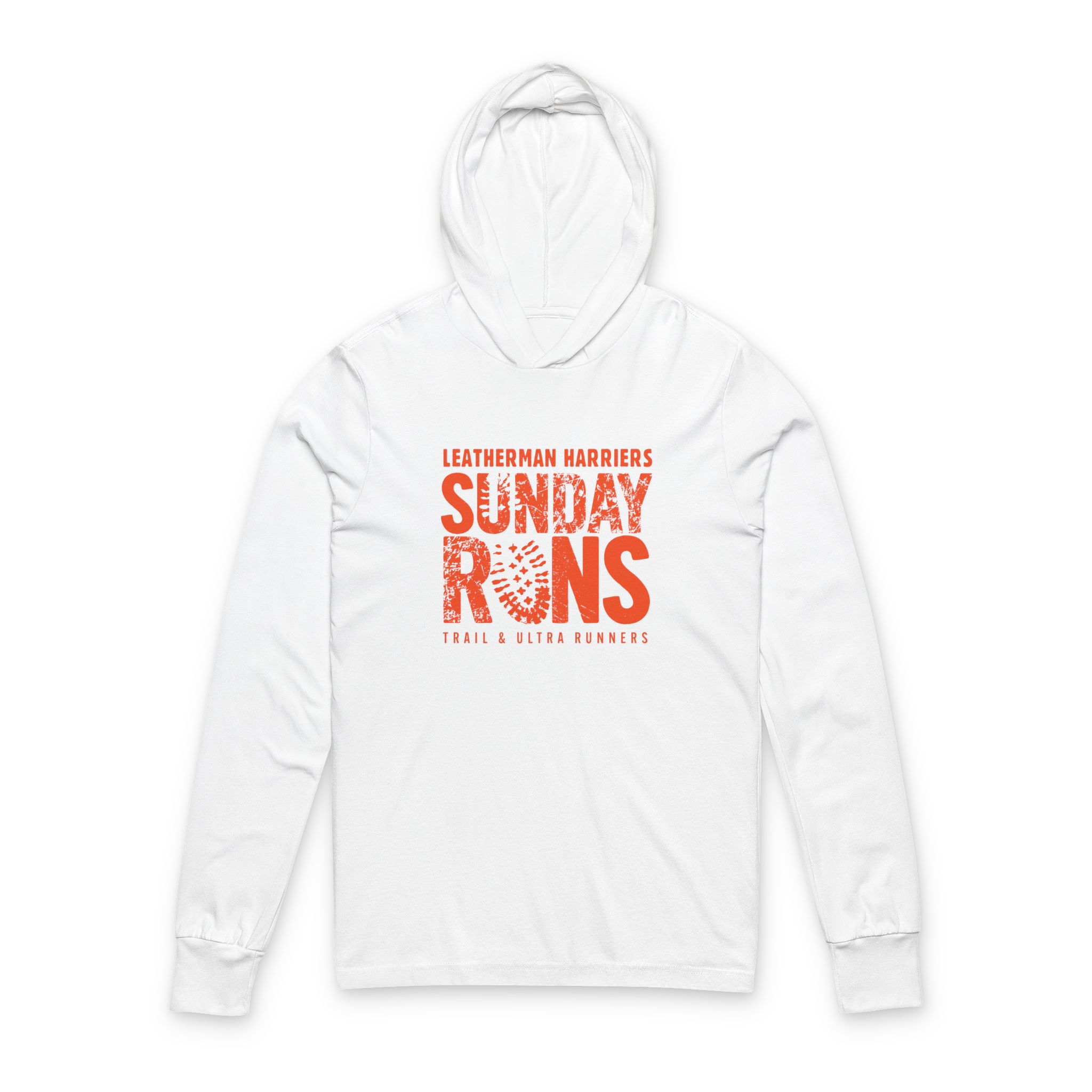 Light as a wake-up run and just as reliable. This hooded long-sleeve tee slips on before sunrise rides and slow cool-down laps, layering without bulk. The faded, stamped “Sunday Runs” graphic carries a lived-in club vibe — worn-in and proud — while the hood and crossover neck add a little shelter from wind and morning chill. It moves with you on trail days and neighborhood jaunts, folding small into a pack or draping over a post-run coffee. For people who lace up on the weekend and trade stories about routes and splits, this shirt feels like one of the crew: breathable, breathable, and quietly durable.