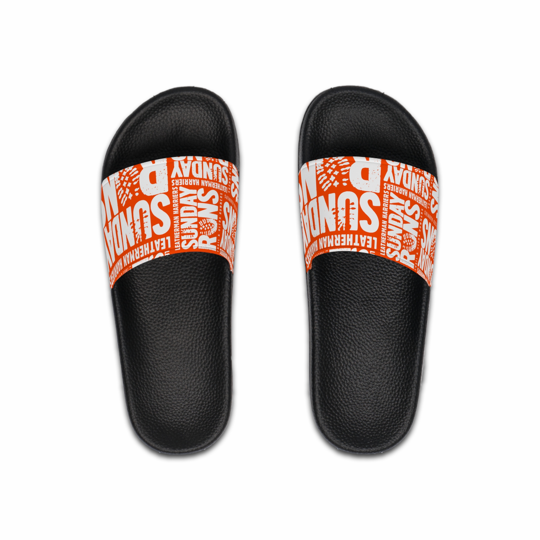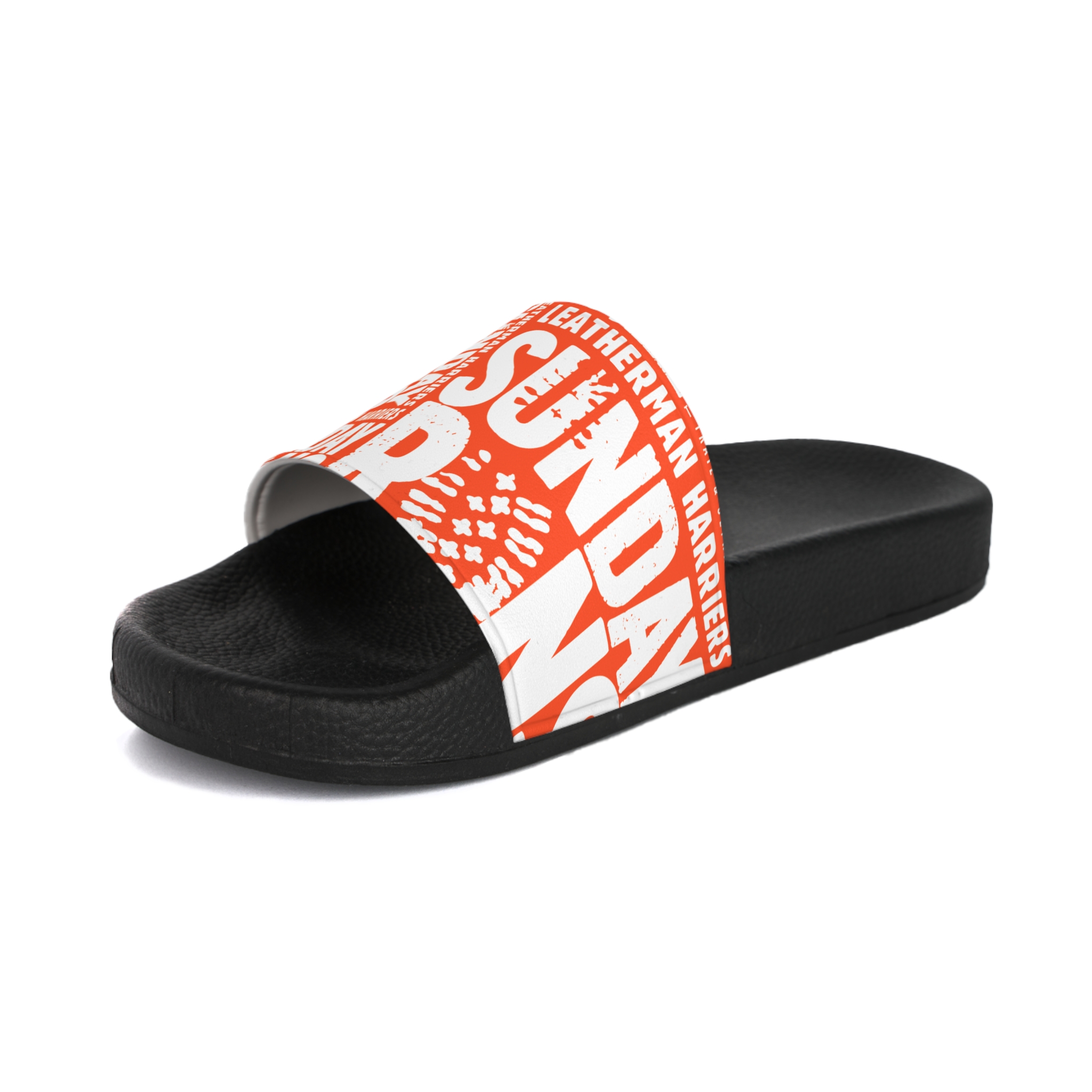 Slide into easy Sundays with these cushioned PVC slide sandals. The textured insole gently cradles your foot while the contoured footbed follows your natural arch for long-wear comfort. A bold printed strap wraps across the top with energetic type treatment in bright orange and white, adding a casual, lively touch to lazy mornings, post-run cooldowns, or poolside breaks. Lightweight and quick-drying, they shrug off splashes and wipe clean with water, so they’re ready whenever you are. Note: they run smaller than usual, so consider sizing up for a roomier fit.