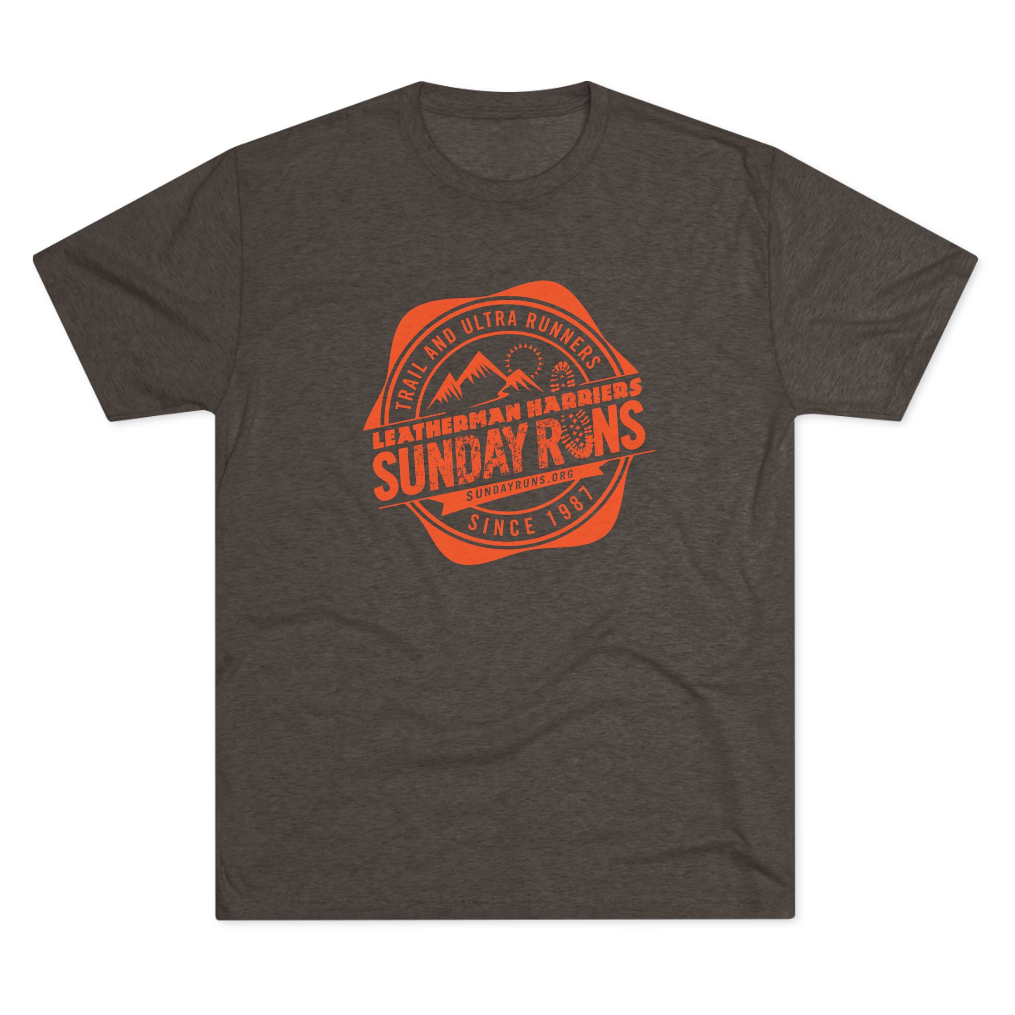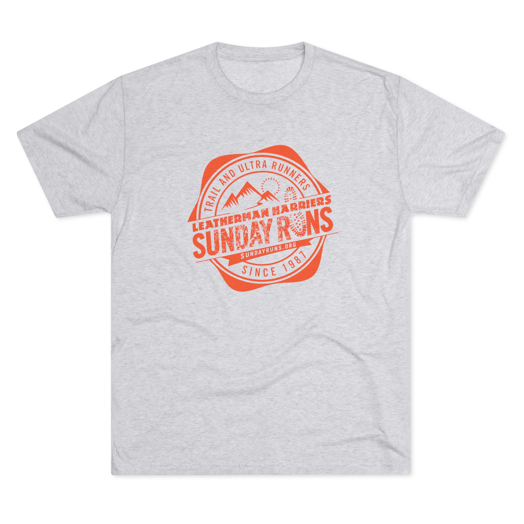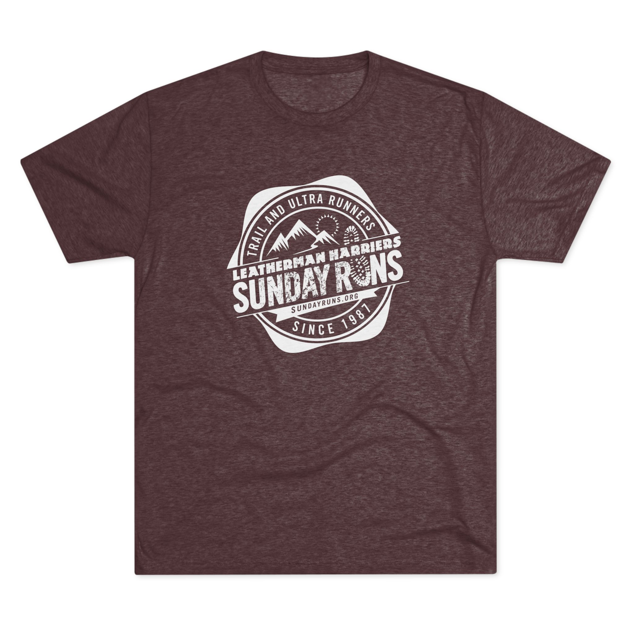 This soft tri-blend tee carries a relaxed, lived-in feel that belongs on trailheads, street corners, and weekend meetups. A muted heather canvas with a classic Sunday Runs badge print—mountain silhouettes and stamped type—is perfect for after runs or any time. Lightweight and drapey, the shirt layers easily under a flannel or wears alone on warmer days. It moves with you: breathable, soft to the touch, and subtly vintage in spirit. Wear it to Sunday group runs, brunch, or anytime you want a low-key nod to the running community.