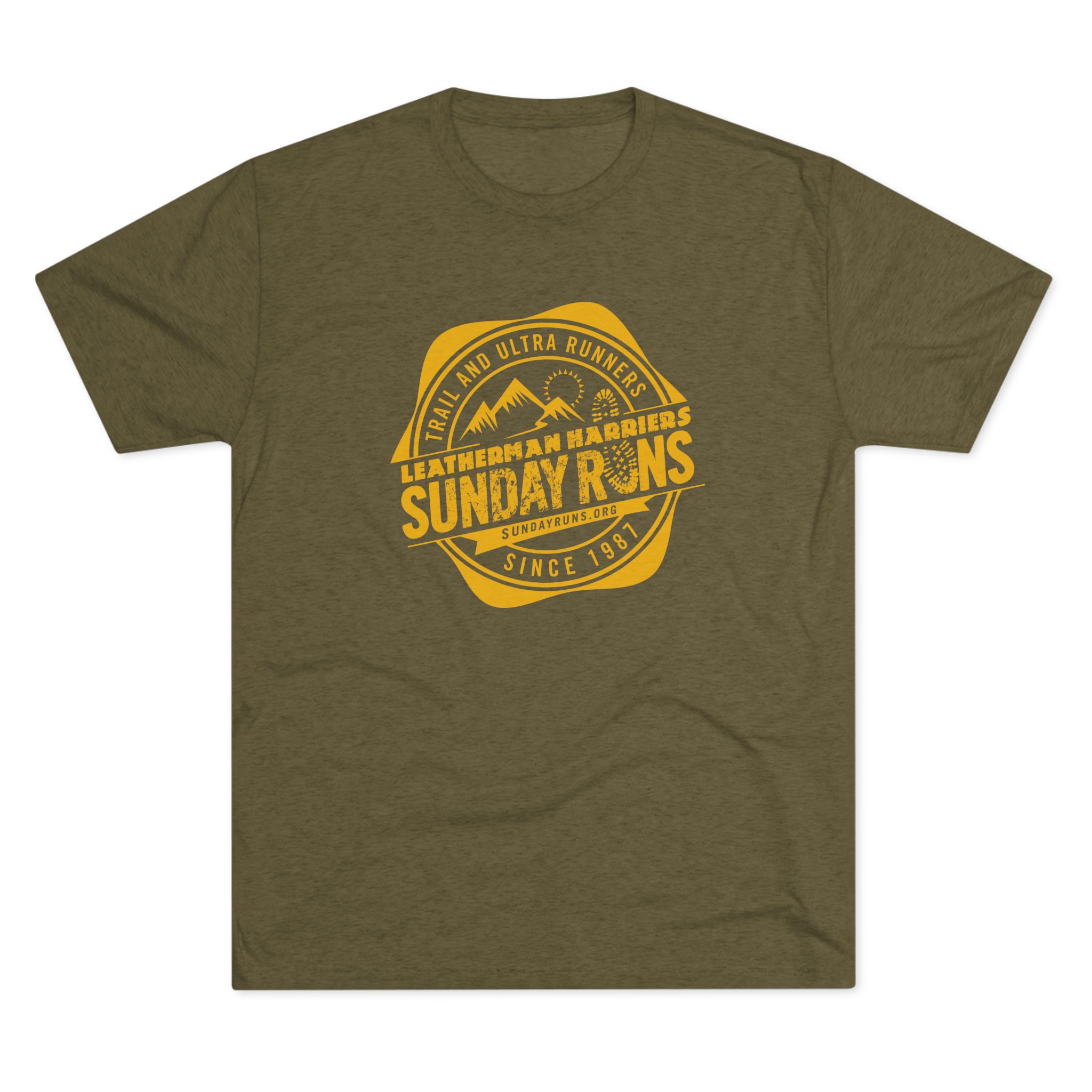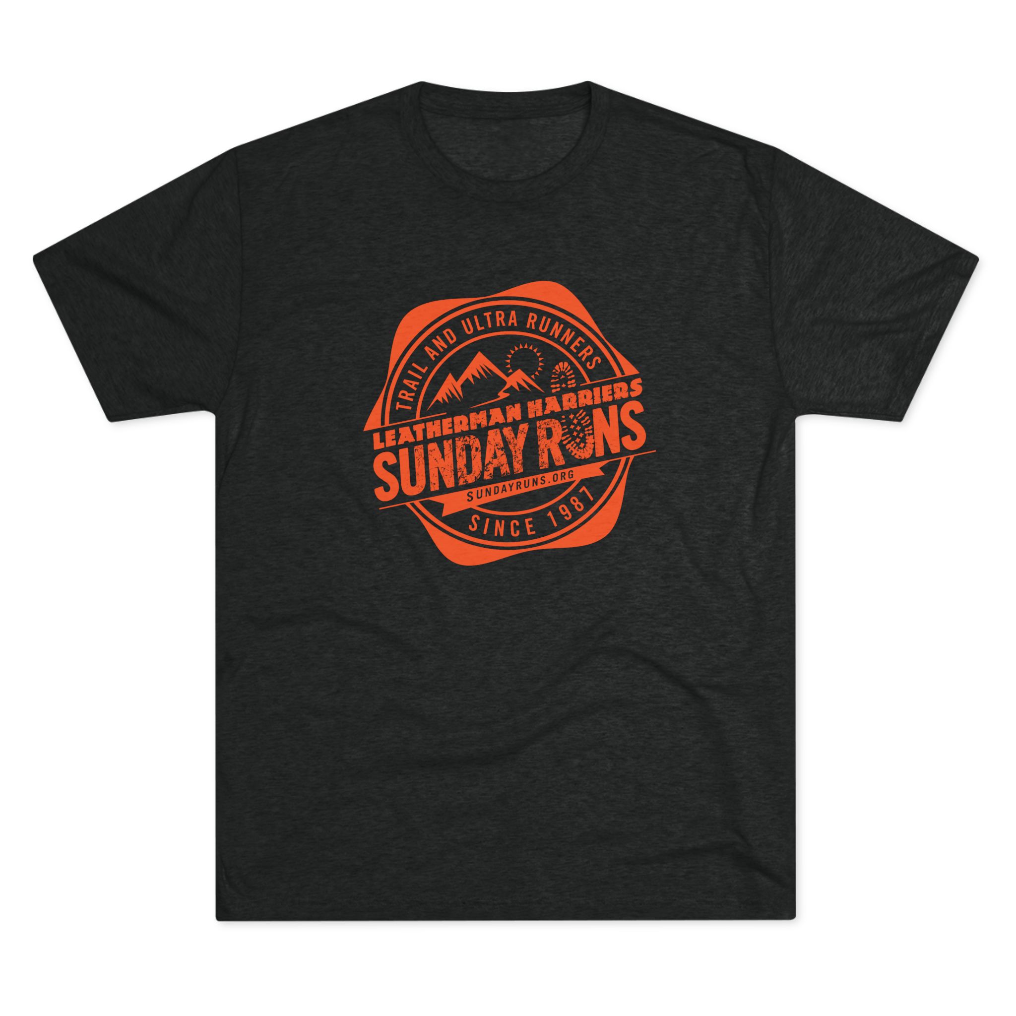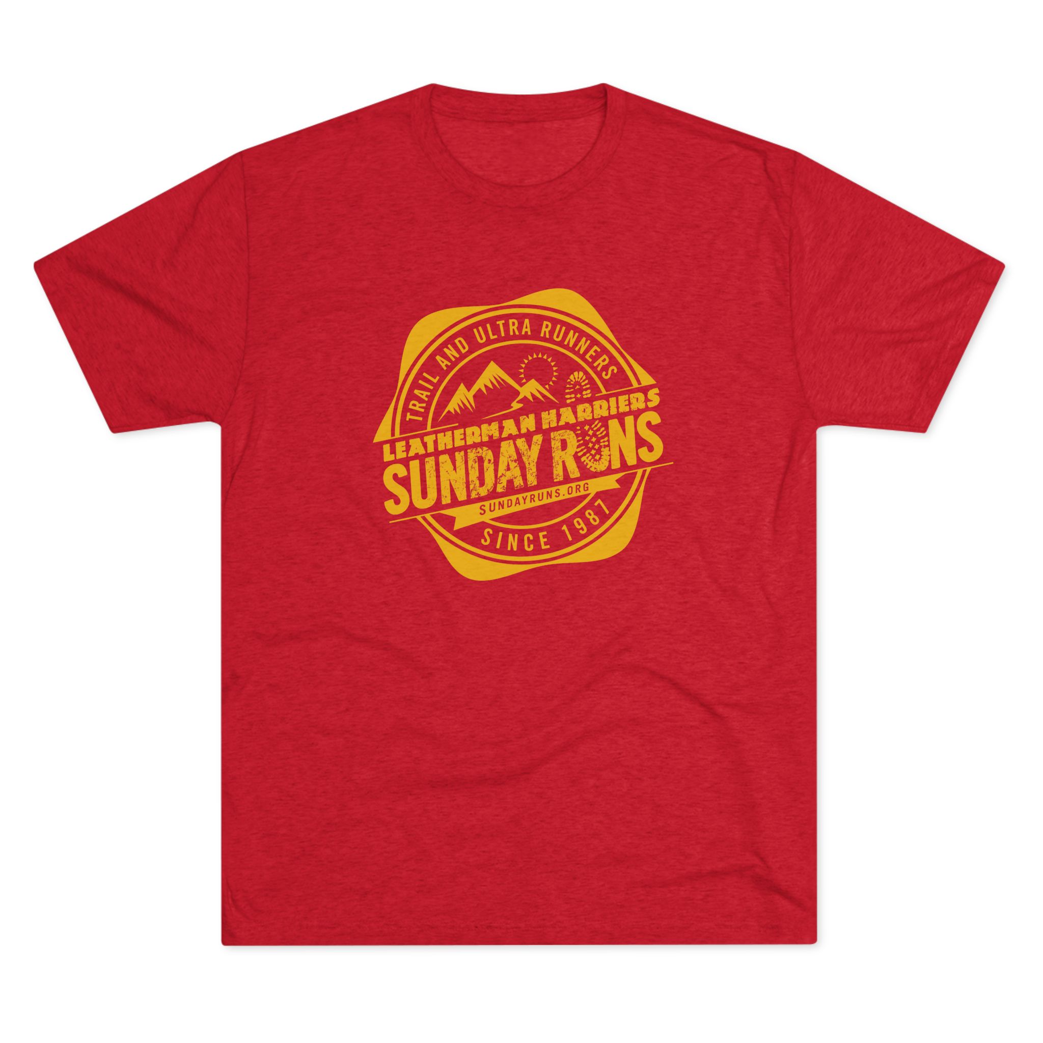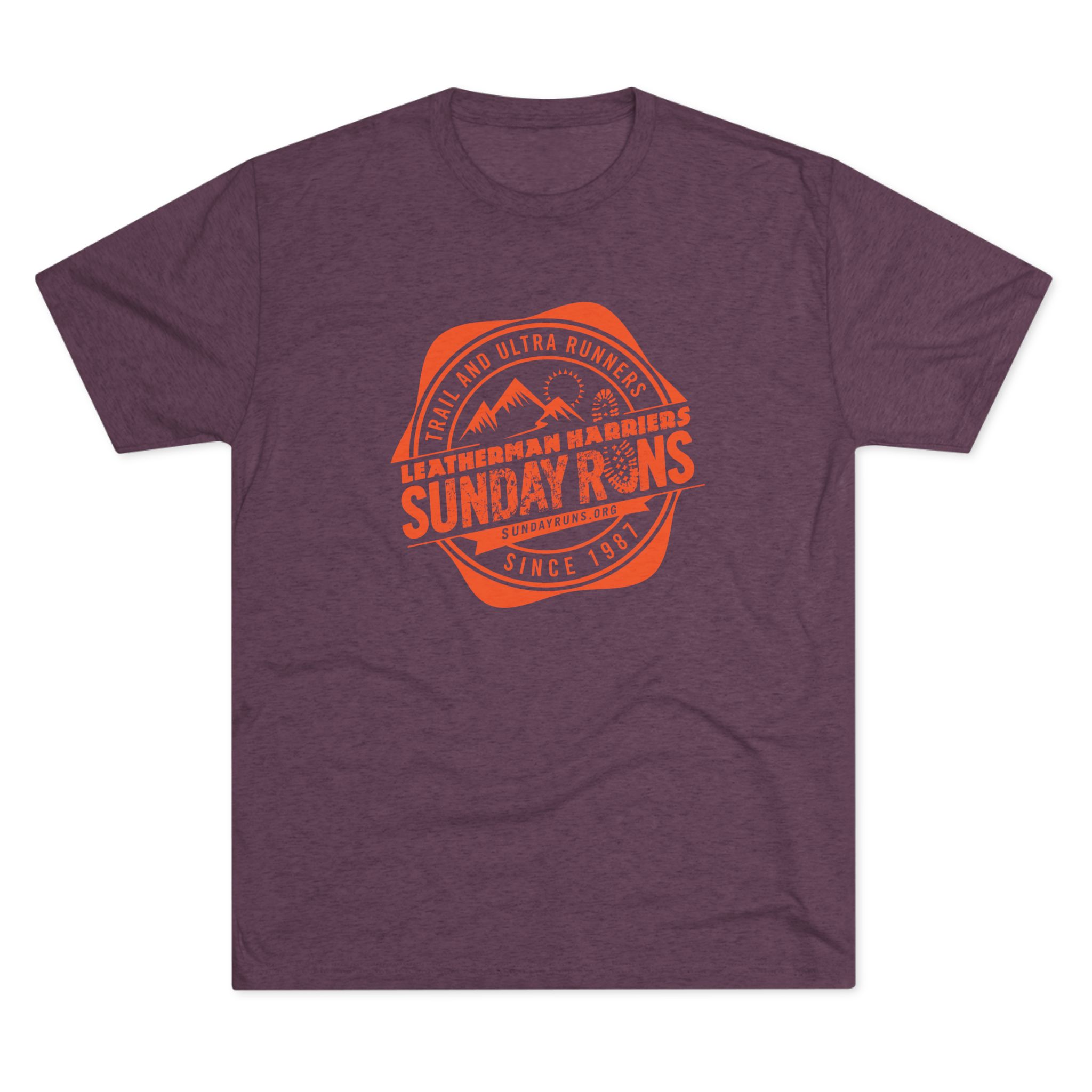 This soft tri-blend tee carries a relaxed, lived-in feel that belongs on trailheads, street corners, and weekend meetups. A muted heather canvas with a classic Sunday Runs badge print—mountain silhouettes and stamped type—is perfect for after runs or any time. Lightweight and drapey, the shirt layers easily under a flannel or wears alone on warmer days. It moves with you: breathable, soft to the touch, and subtly vintage in spirit. Wear it to Sunday group runs, brunch, or anytime you want a low-key nod to the running community.