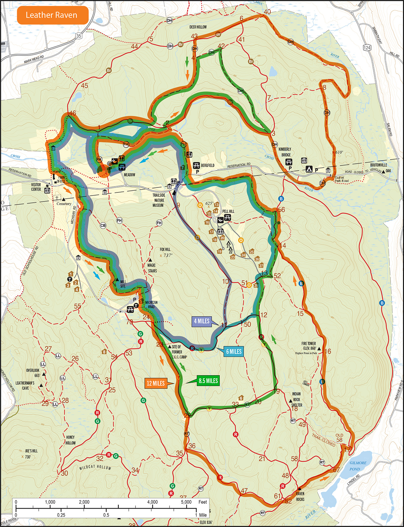 On Sunday, November 23, at 8:00 a.m., meet at Ward Pound Ridge Reservation, Meadow Lot, ready to run the ultimate in courses—the Leather Raven. While the full course is 12 miles, you have shorter options. All courses start in the direction of the Leatherman’s Loop and end like Raven Rocks but each takes different turns depending on distance. Complete all courses and you may have a 50k, but I’ll save that for another day. Cobweb crew starts at 5:00; Early risers at 7:00 .